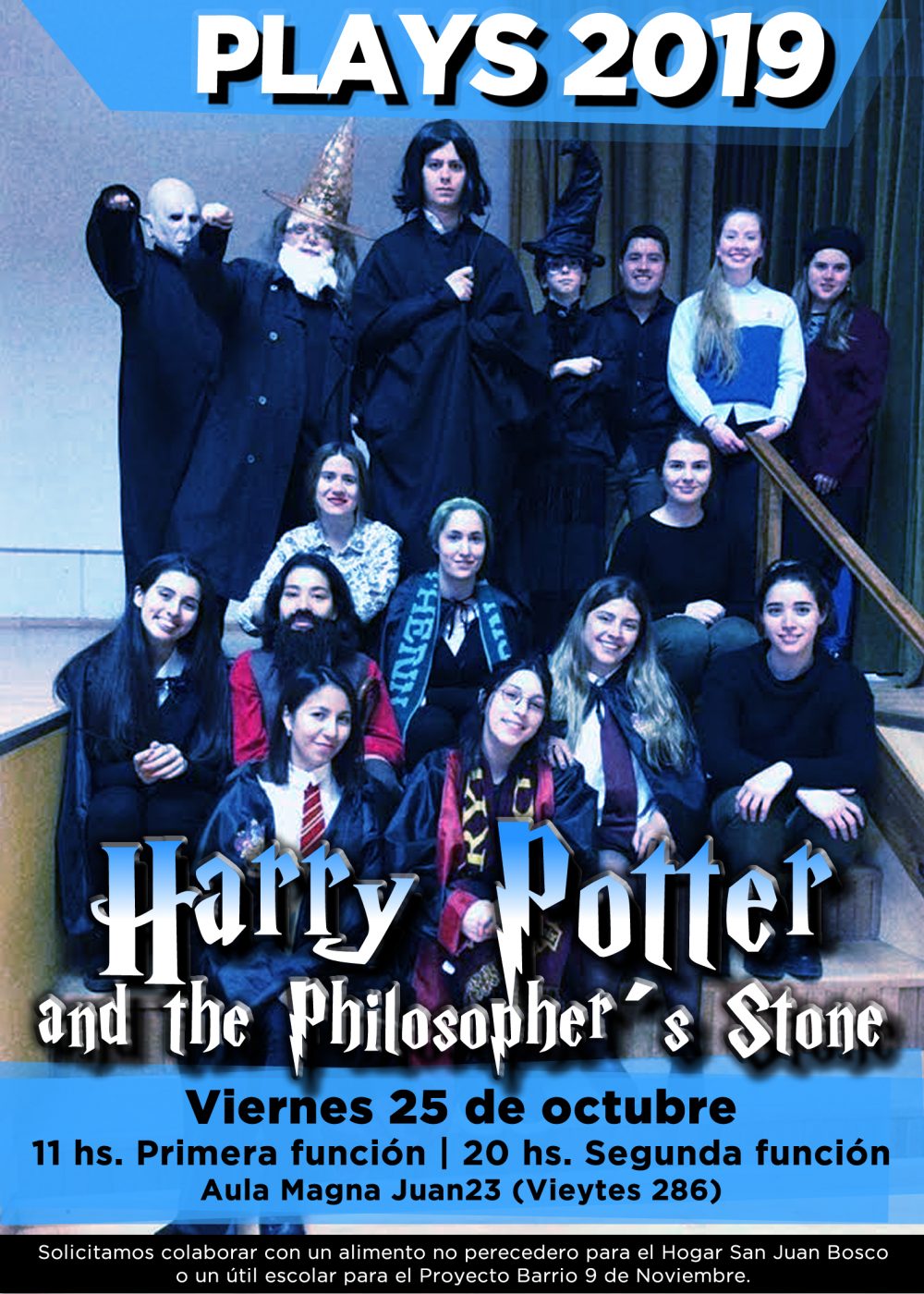 La presentación se llevará a cabo el próximo viernes 25 de octubre a las 11 y a las 20 hs en el Aula Magna del Instituto Superior Juan XXIII (Vieytes 286). La obra que se presentará este año es «Harry Potter and the Philosopher´s Stone», estará a cargo de alumnos de 4º A y Bº del profesorado de Inglés.