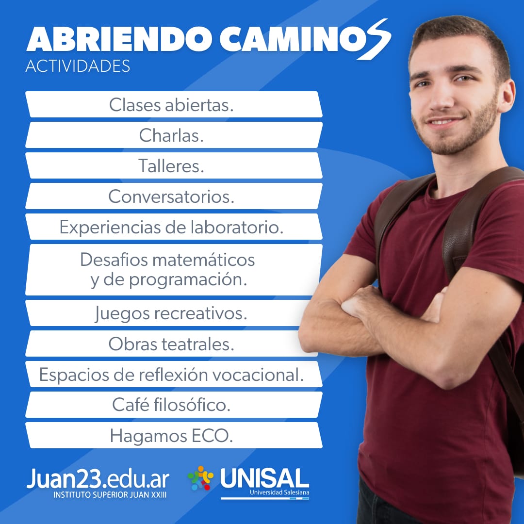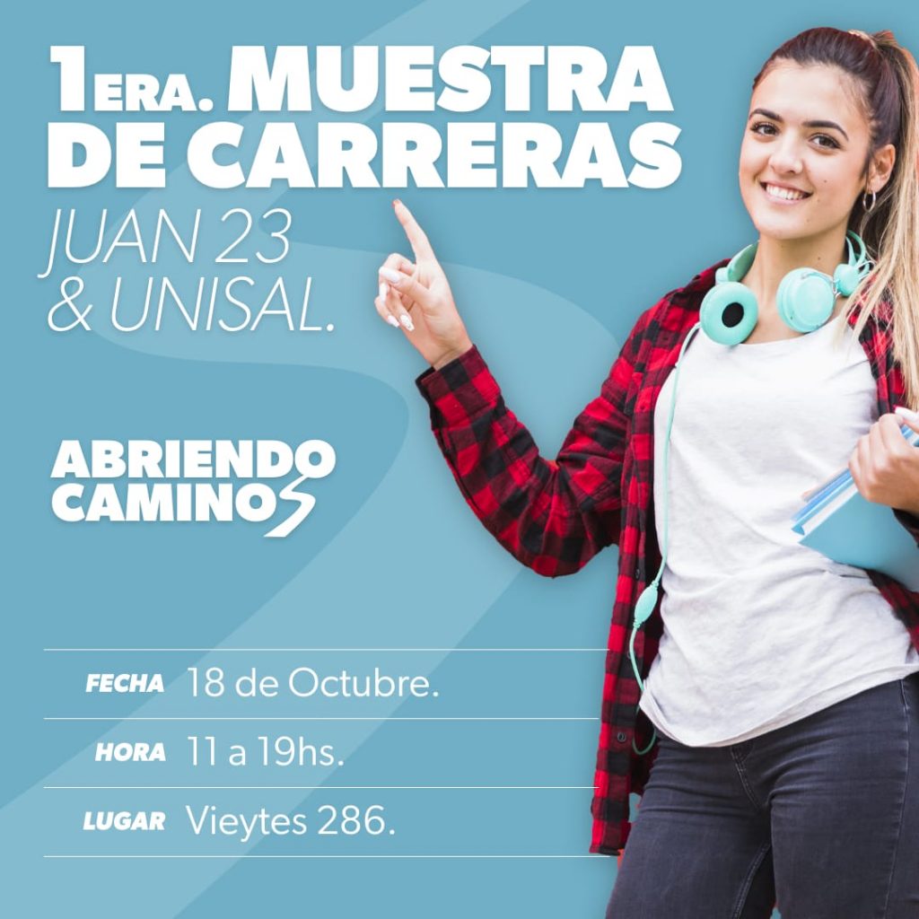 El Instituto Superior Juan 23 y la Universidad Salesiana realizarán la Primera Muestra «Abriendo Caminos», que tendrá lugar el viernes 18 de octubre de 11 a 19 en Vieytes 286.