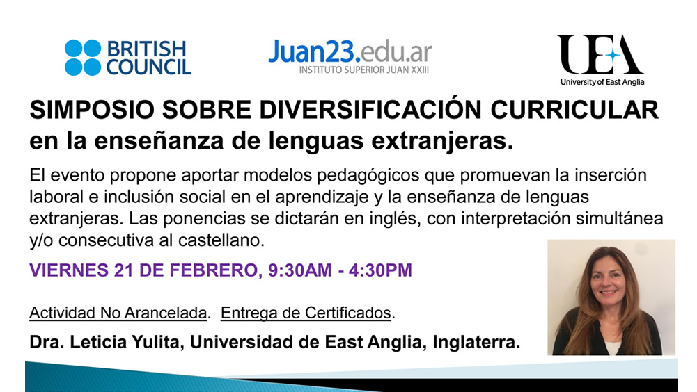 Un simposio dedicado a analizar cuestiones como la baja participación y representación de grupos sociales minoritarios y de estudiantes varones en carreras del área de las lenguas extranjeras tendrá lugar el próximo viernes 21, auspiciado por el British Council, la Universidad de East Anglia y el Instituto Superior Juan XXIII.